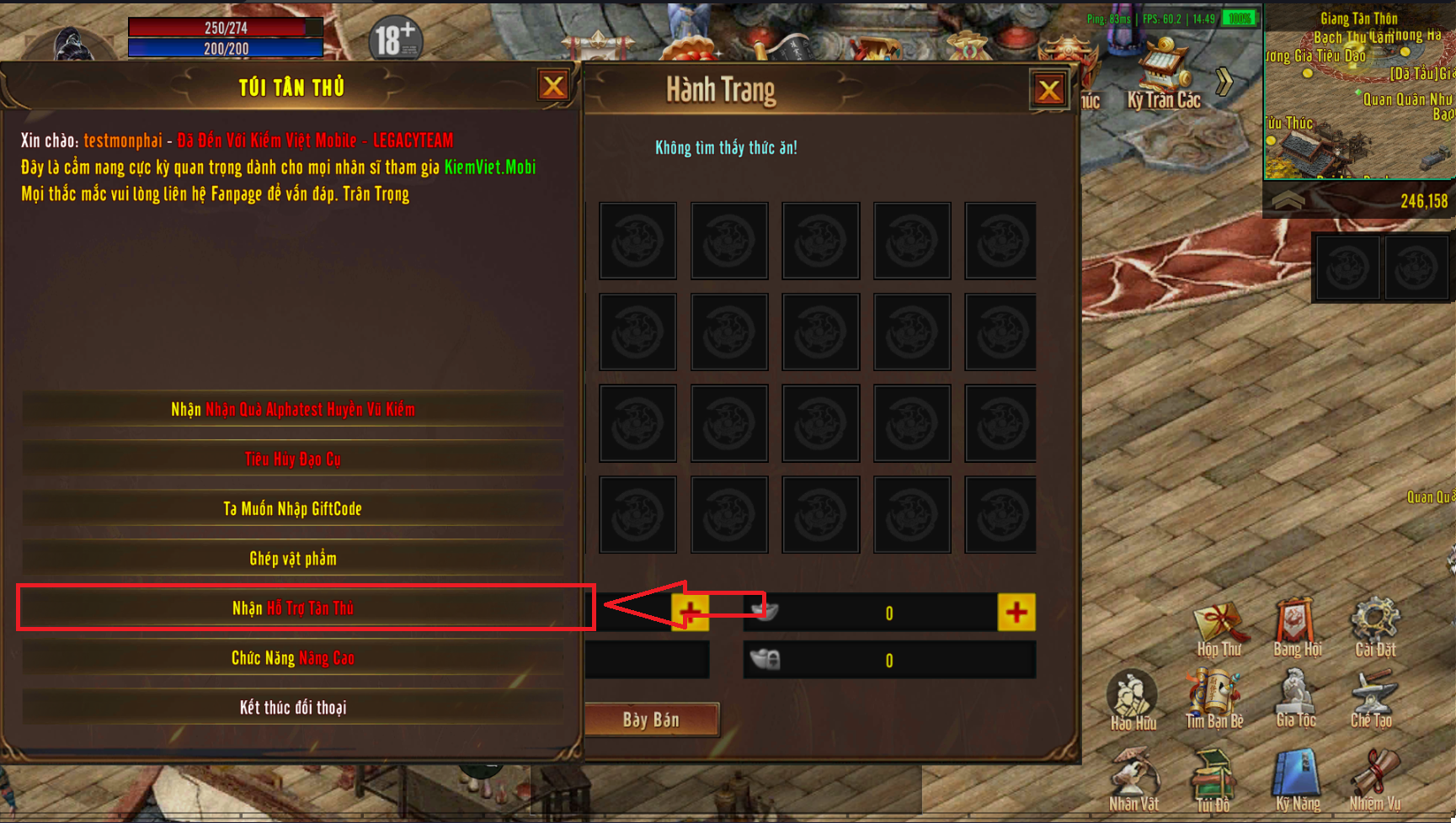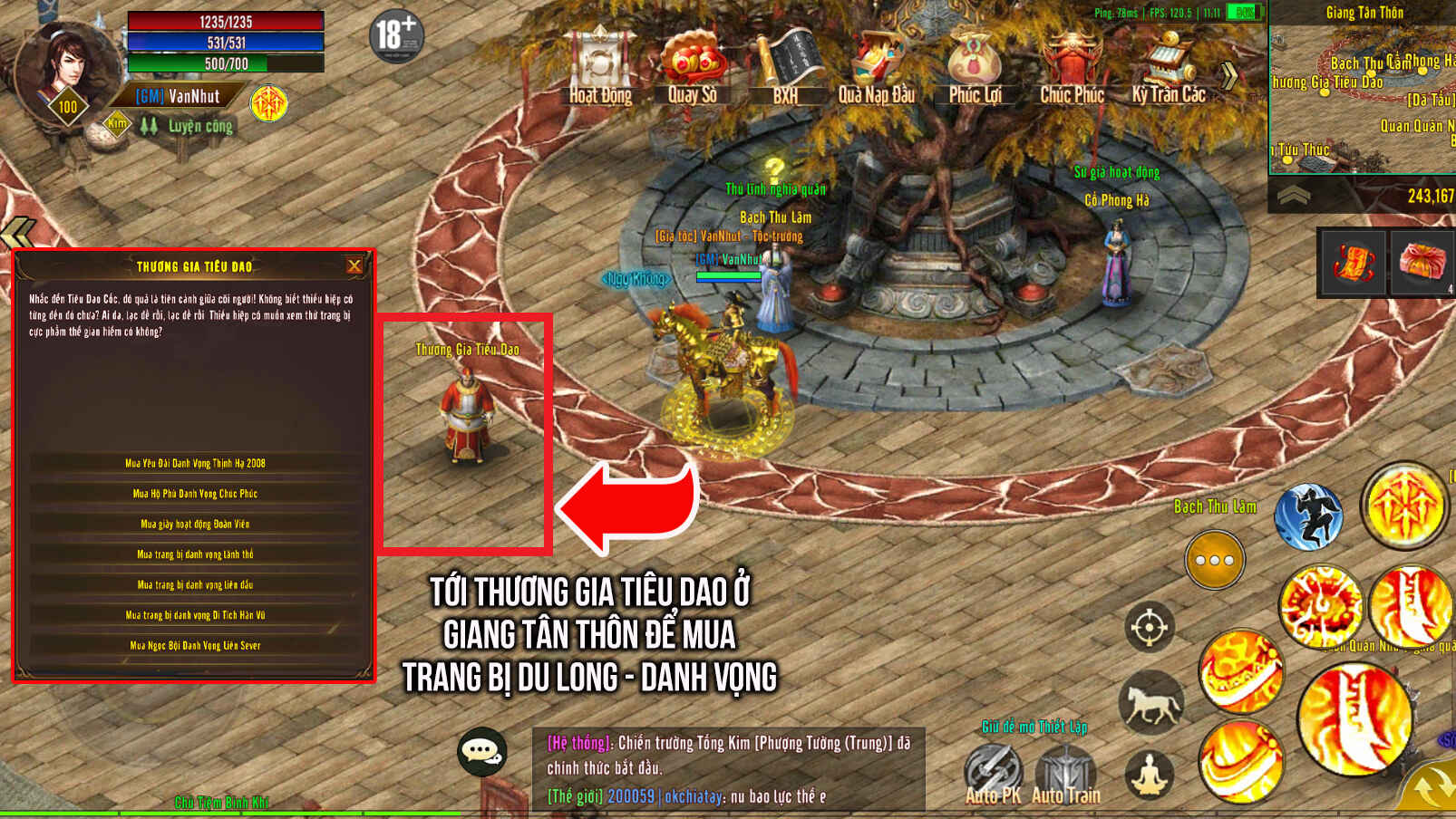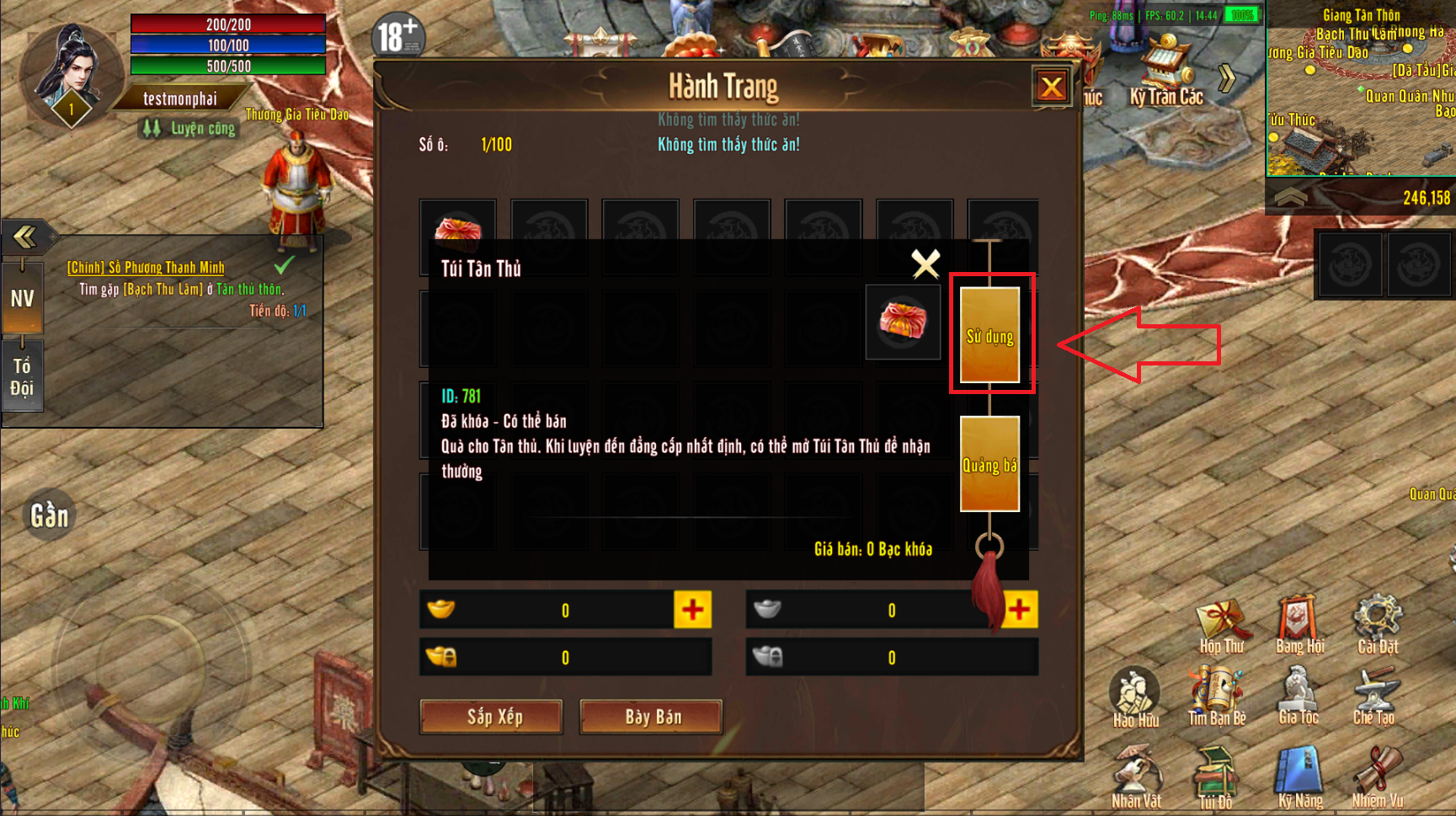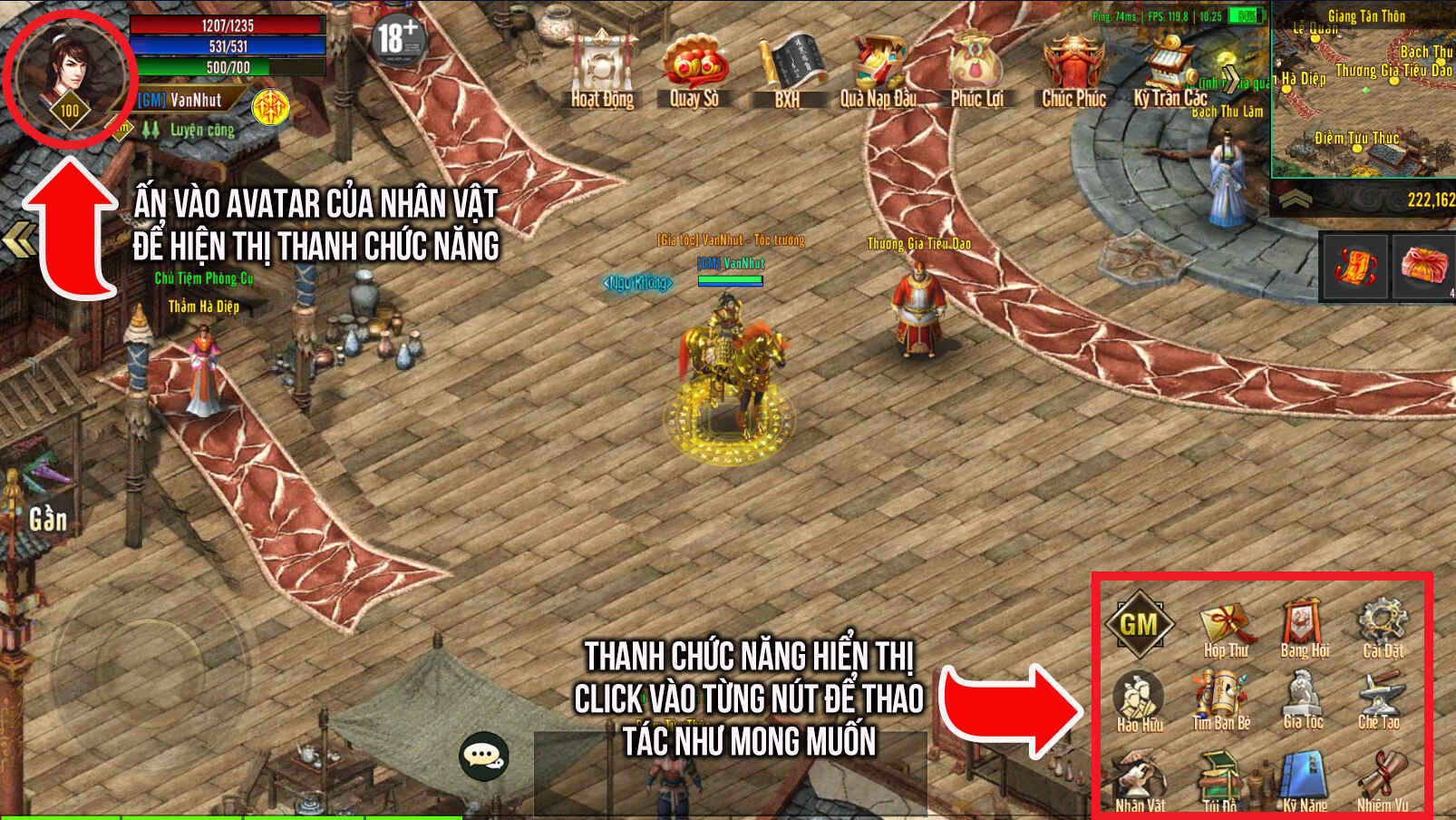 Ngoài ra 1 số hình ảnh hướng dẫn thao tác cơ bản trong game :