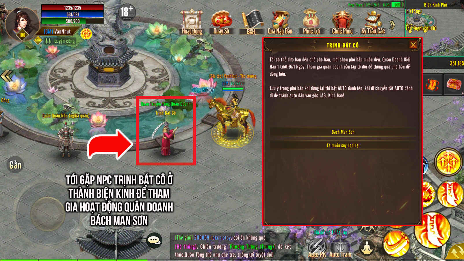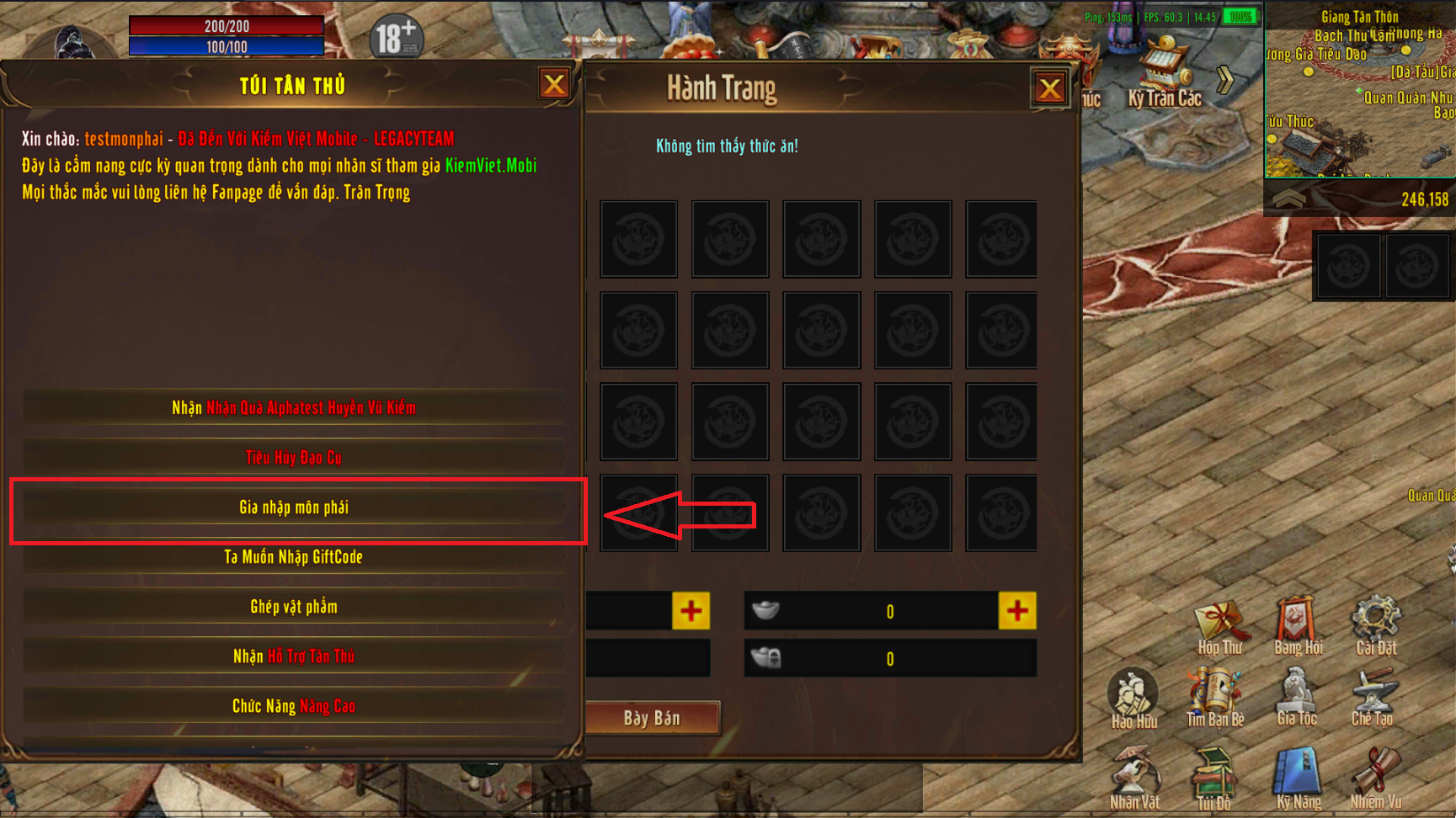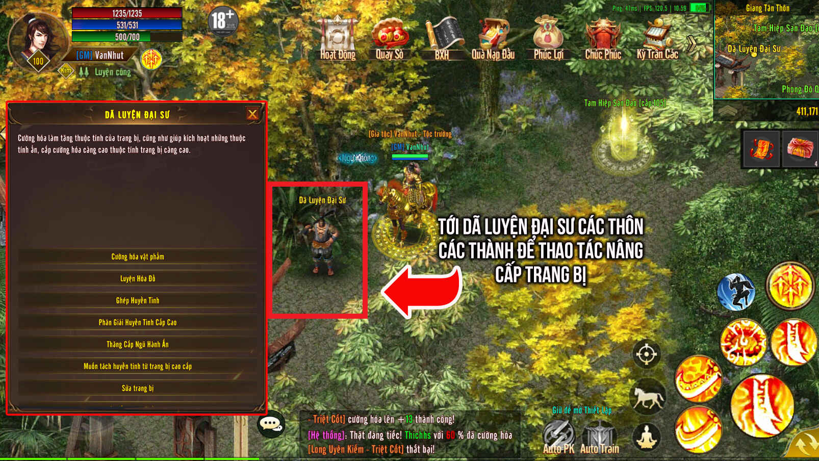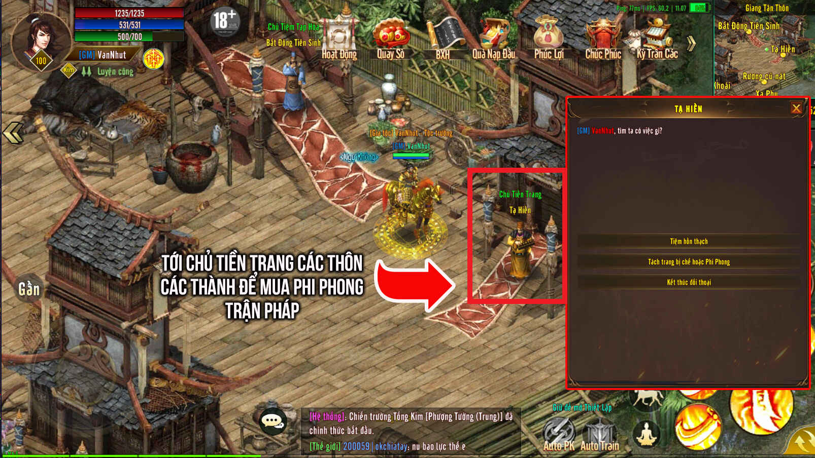 Ngoài ra 1 số hình ảnh hướng dẫn thao tác cơ bản trong game :