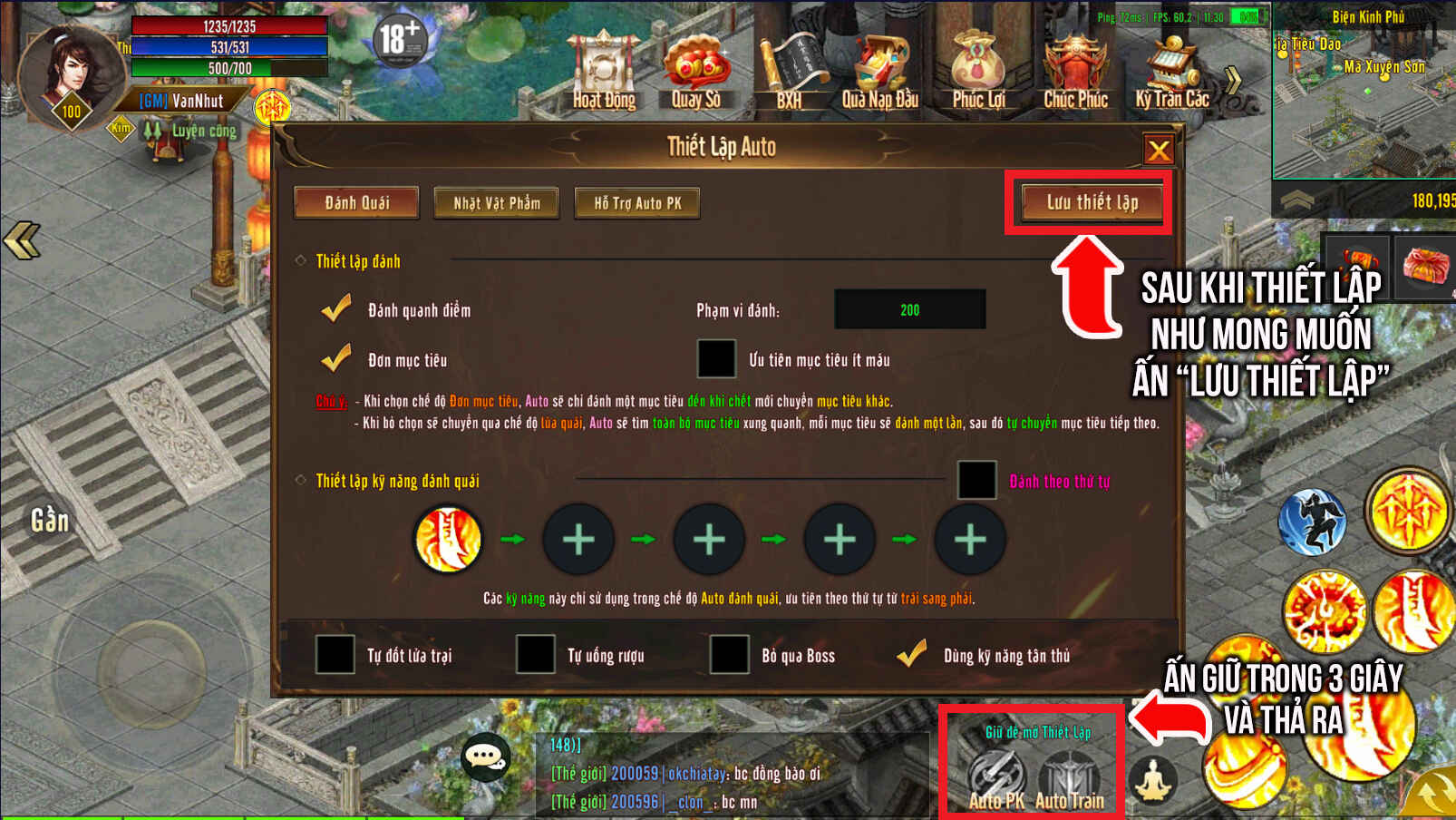 Thiết Lập Kỹ Năng Tay + Thiết Lập AUTO :