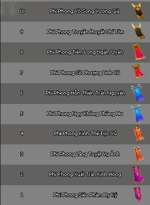 | 110 | x5 Huyền Tinh 8 x1 Huyền Tinh 9 x200 Vạn Bạc Khoá x1000 Tiền Du Long |