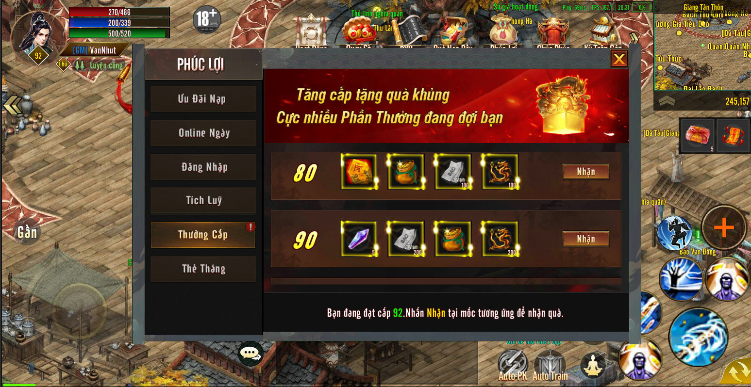 | 80 | x1 Du long Danh Vọng Lệnh (Hộ Thân Phù) x1 Set Trang Bị 8x x100v Bạc Khoá x100 Tiền Du Long |