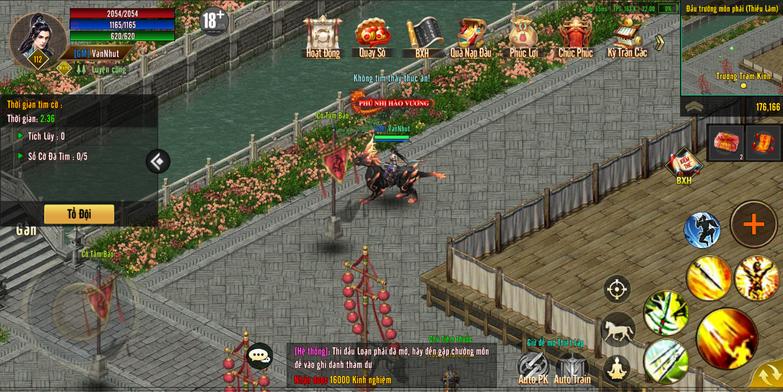 Sau khi kết thúc thời gian thi đấu, đồng đạo có thể đến NPC Cờ Quán Quân để nhận thưởng